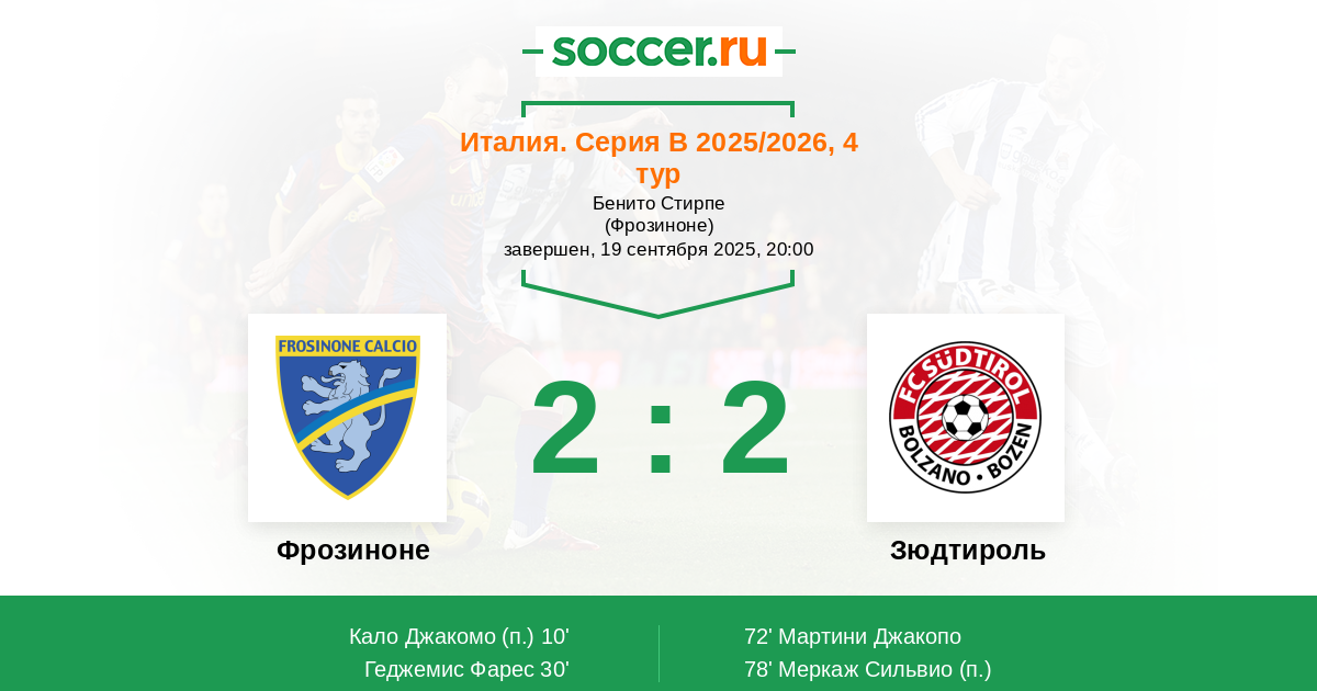 72' (2:1) Мартини Джакопо (6) (Меркаж Сильвио (33))