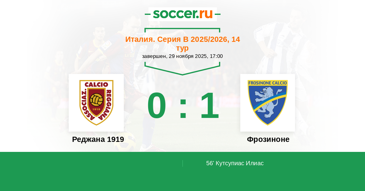 56' (0:1) Кутсупиас Илиас (8) (Кало Джакомо (14))