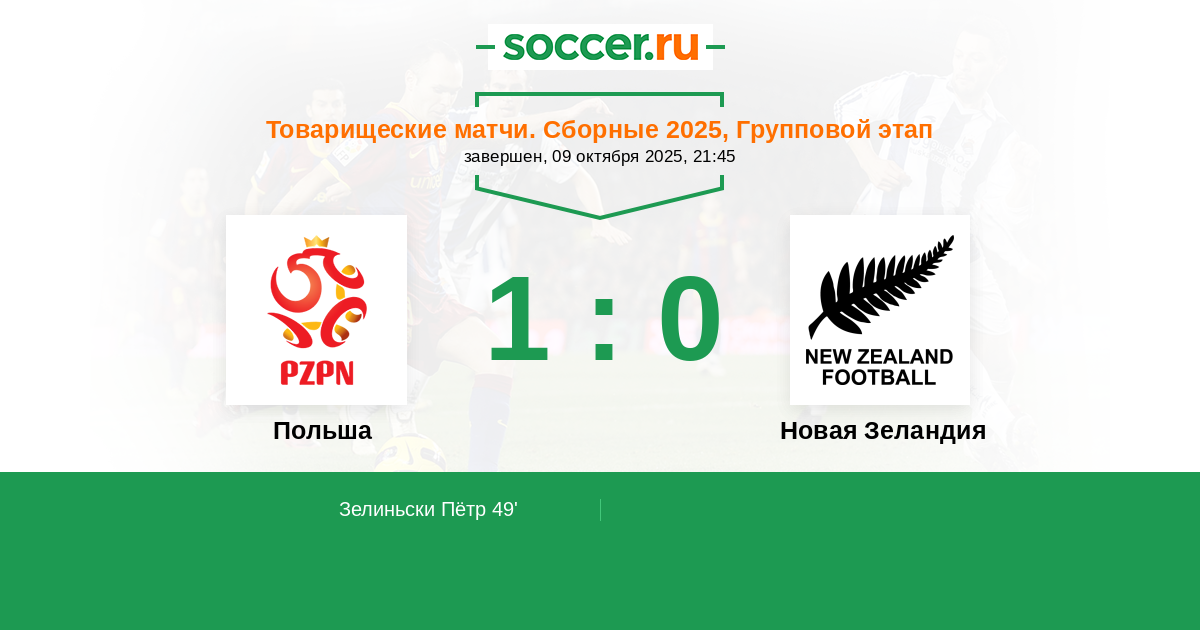 49' (1:0) Зелиньски Пётр (10) (Вшолек Павел (16))