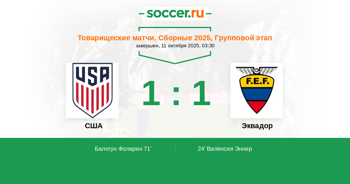 24' (0:1) Валенсия Эннер (13) (Замора Йебоа (9))