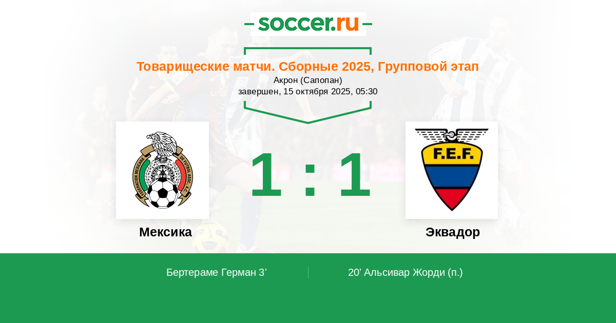 20' (1:1) Альсивар Жорди (8)