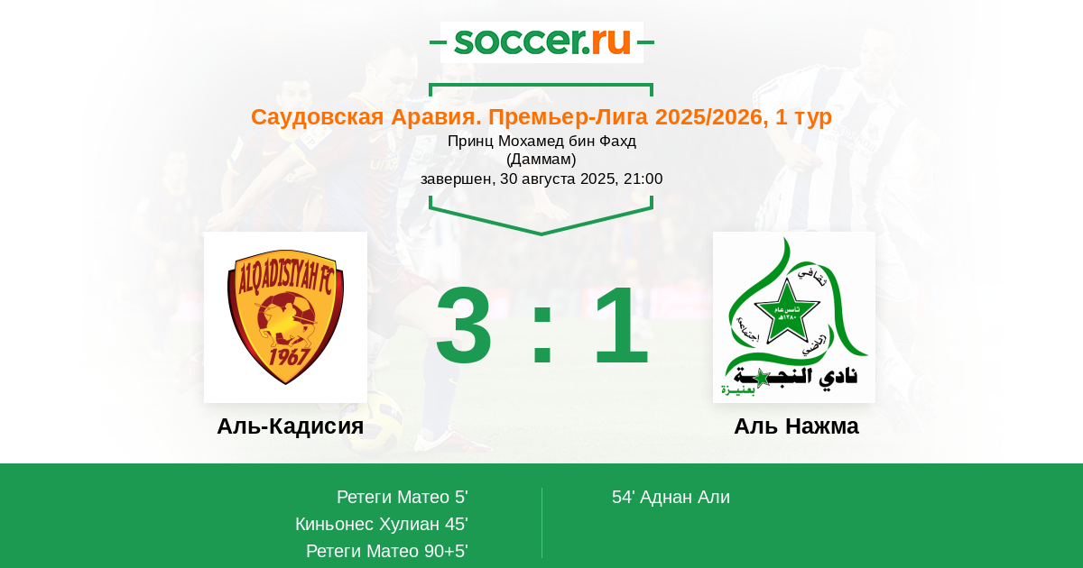 5' (1:0) Ретеги Матео (32) (Аль-Аммар Турки (7))