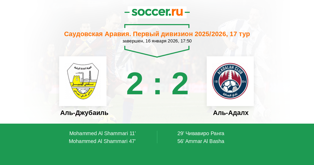 29' (1:1) Чивавиро Ранга (10) (Rashed Al Salem (98))