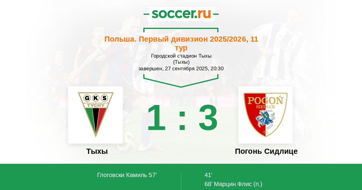 72' (1:3) Марцин Флис (6) (Фамулак Мацей (11))