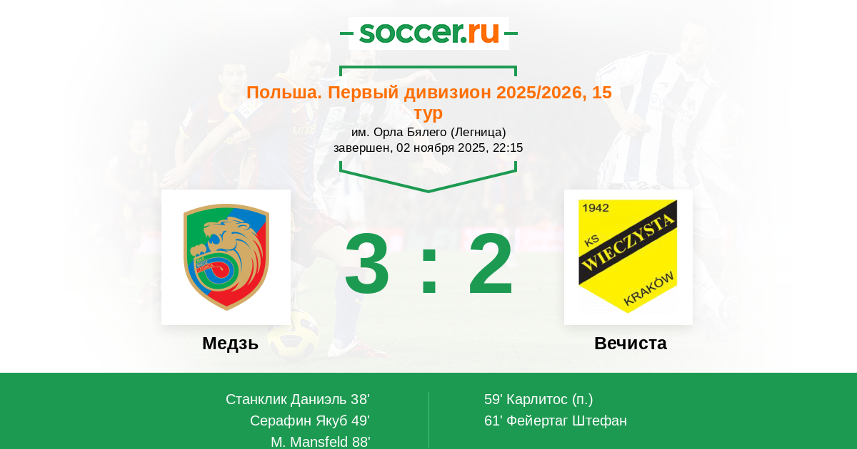 61' (2:2) Фейертаг Штефан (18)