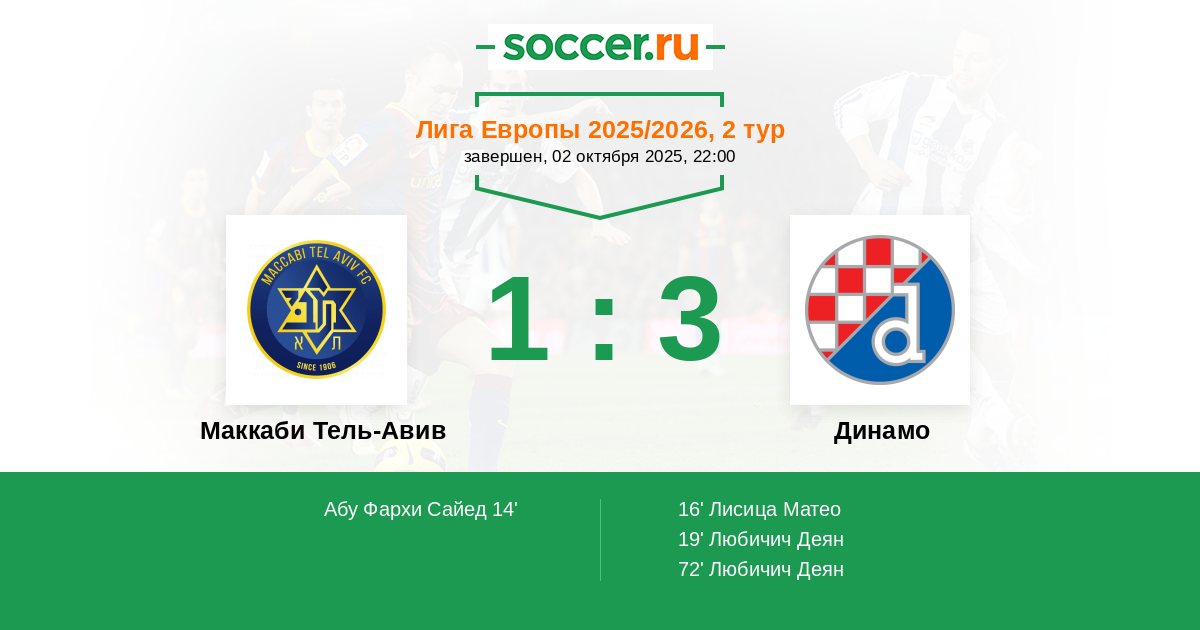 72' (1:3) Любичич Деян (77) (Бельо Дион (9))
