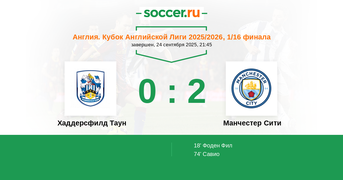 74' (0:2) Савио (26) (Фоден Фил (47))