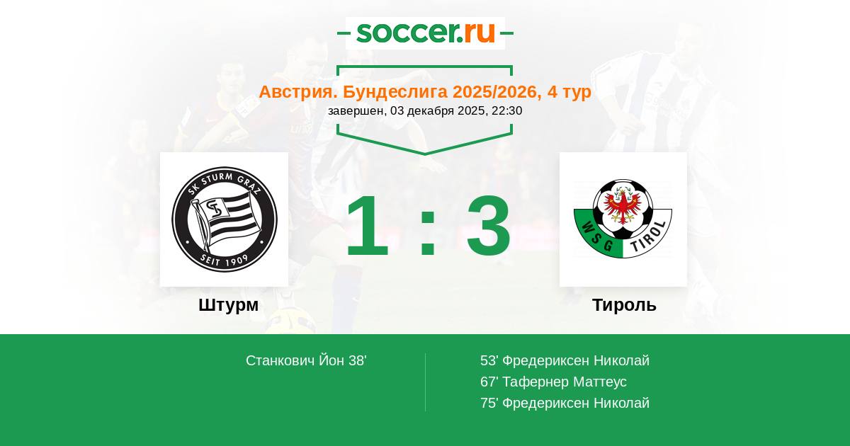 Гол53' (1:1) Фредериксен Николай (8) (Тафернер Маттеус (30))