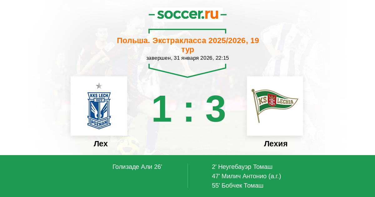 55' (1:3) Бобчек Томаш (89) (Чиркович Александар (8))