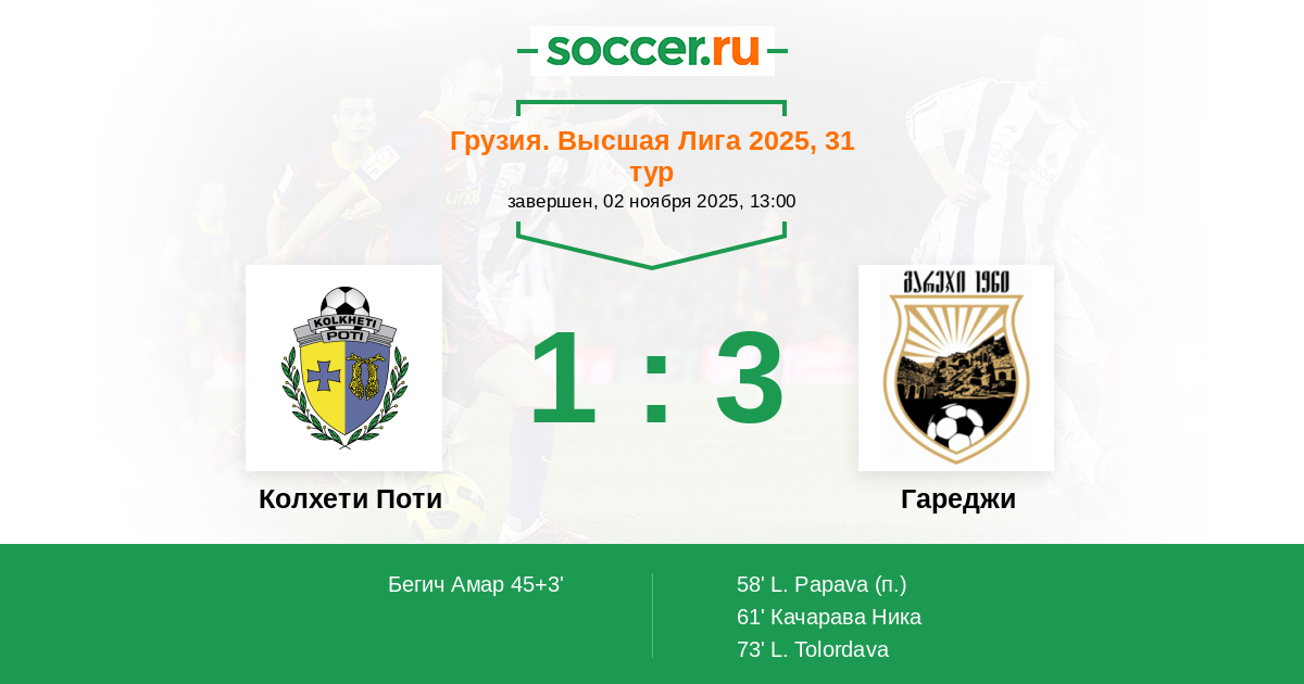 45+3' (1:0) Бегич Амар (6) (Харебава Георгий (7))