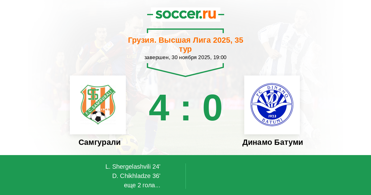 36' (2:0) Чихладзе Демур (10) (Шергелашвили Лаша (27))