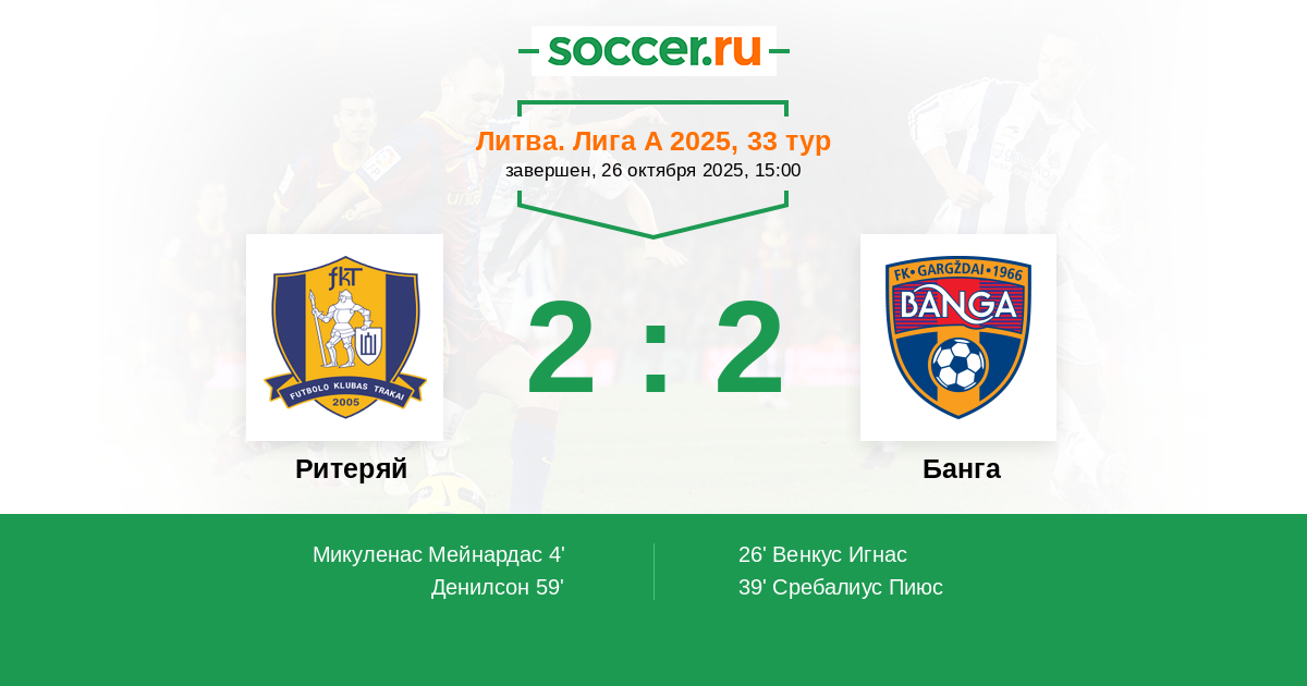39' (1:2) Сребалиус Пиюс (18) (Филипавичус Рокас (11))