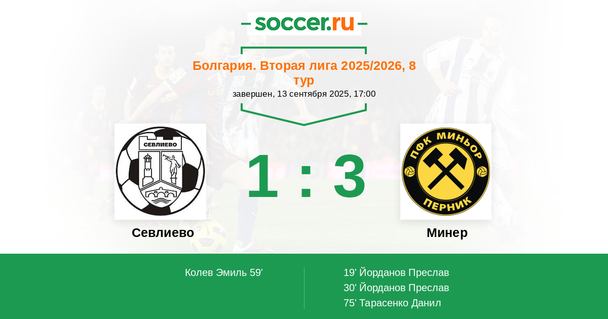 59' (1:2) Колев Эмиль (9)