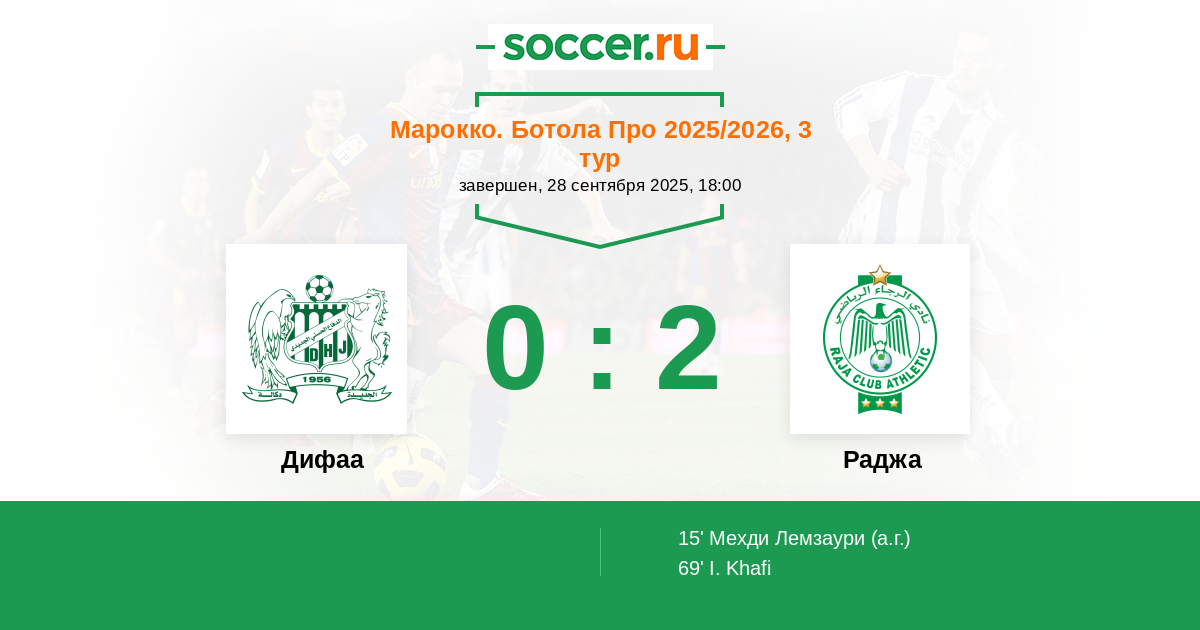 69' (0:2) Хафи Исмаил (9) (Эннаффати Адам (77))