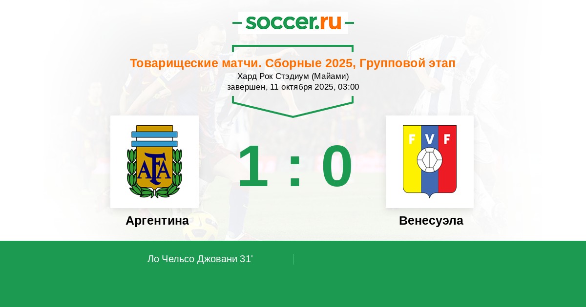 31' (1:0) Ло Чельсо Джовани (11) (Мартинес Лаутаро (22))