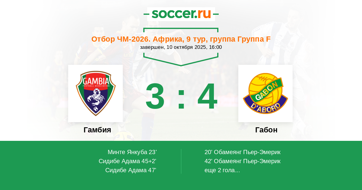 Запасные: 21 Санне Мухаммед (с 50'), 19 Бари Абобкар (с 66'), 7 Фадера Алиу (с 82'), 17 Соу Али (с 82'), 1 Хару Эбрима, 22 Сиби Шейх, 6 Нье Момоду, 5 Боджанг Яхья, 23 Драмме Мухамаду, 14 Кисай Йеспер, 13 Сисай Абдули, 11 Манне Абдули