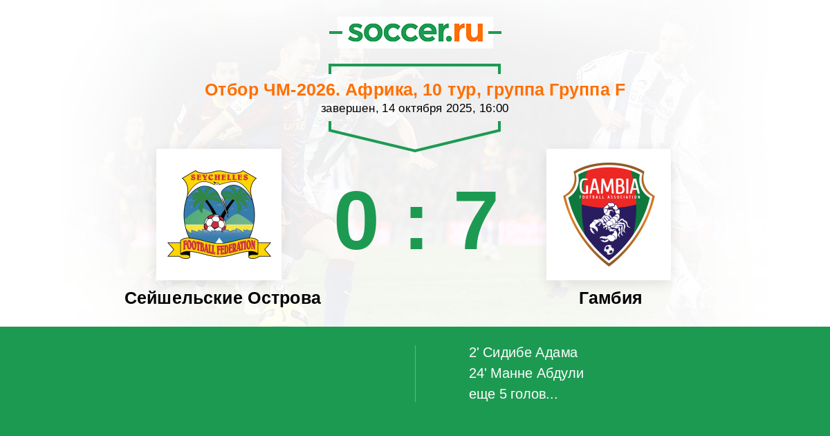 24' (0:2) Манне Абдули (11)
