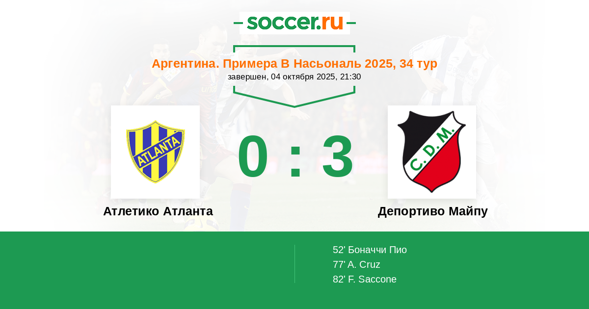 52' (0:1) Боначчи Пио (9) (J. de la Reta (3))
