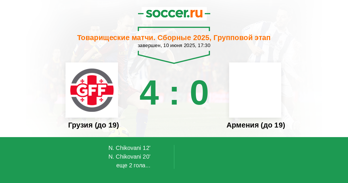 20' (2:0) Чиковани Николоз (11) (Гвасалия Джорджи (7))