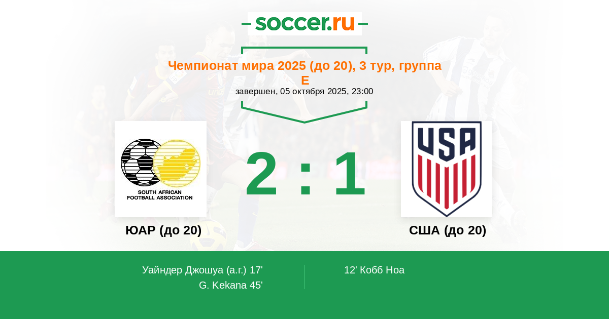ЮАР (до 20) - США (до 20)