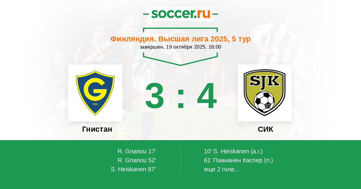 10' (0:1) Автогол Хейсканен Саку (3)