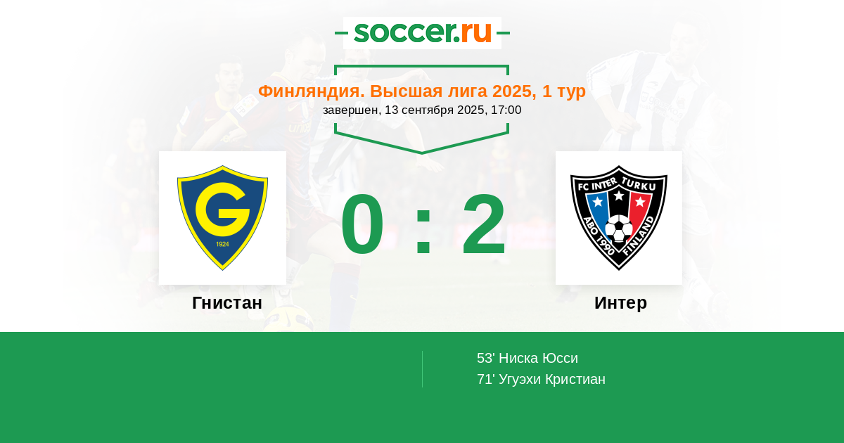 53' (0:1) Ниска Юсси (2) (Угуэхи Кристиан (6))