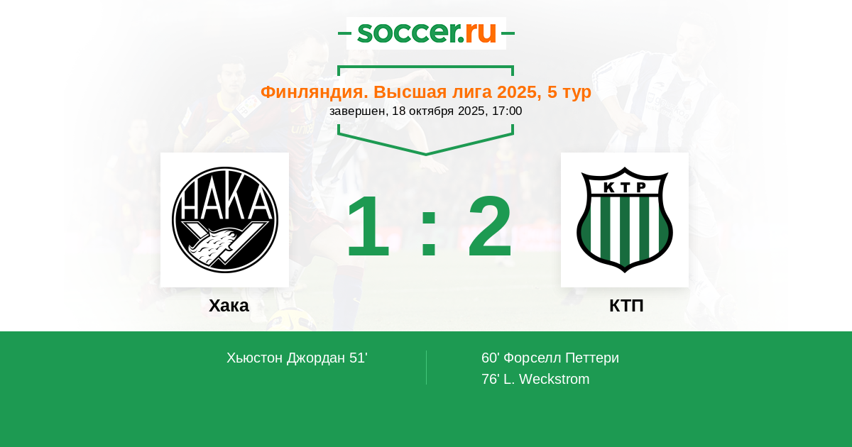 60' (1:1) Форселл Петтери (10) (Паавола Матиас (26))
