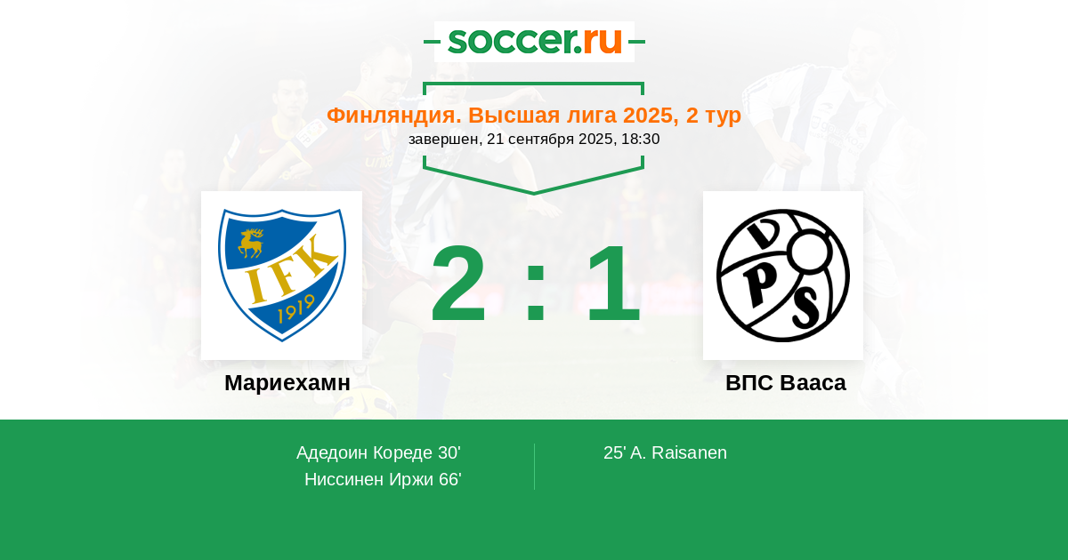 25' (0:1) Райсанен Антти-Вилле (34) (Даусси Яссин (24))
