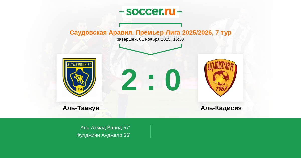 57' (1:0) Аль-Ахмад Валид (23) (Фулджини Анджело (11))