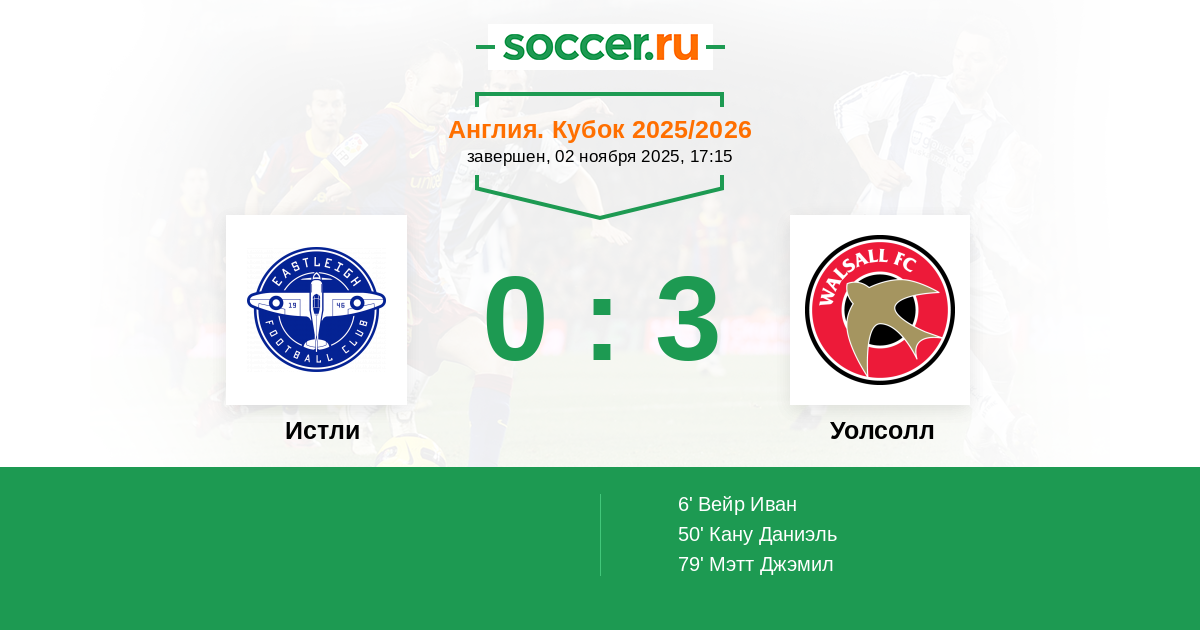 50' (0:2) Кану Даниэль (15) (Вейр Иван (30))