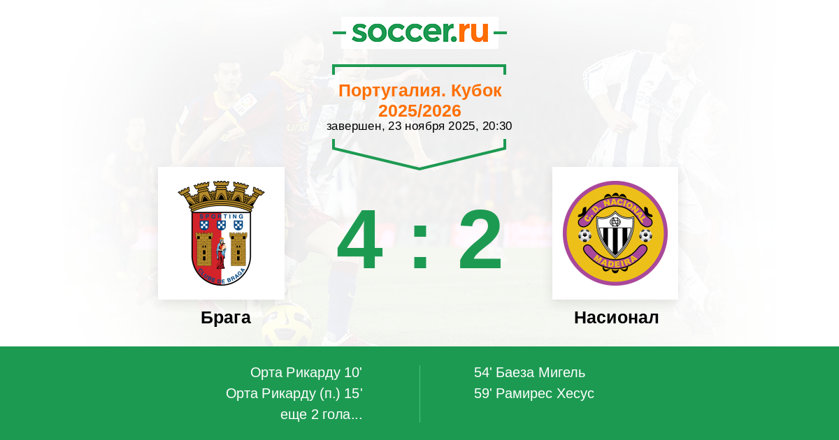 54' (3:1) Баеза Мигель (8)