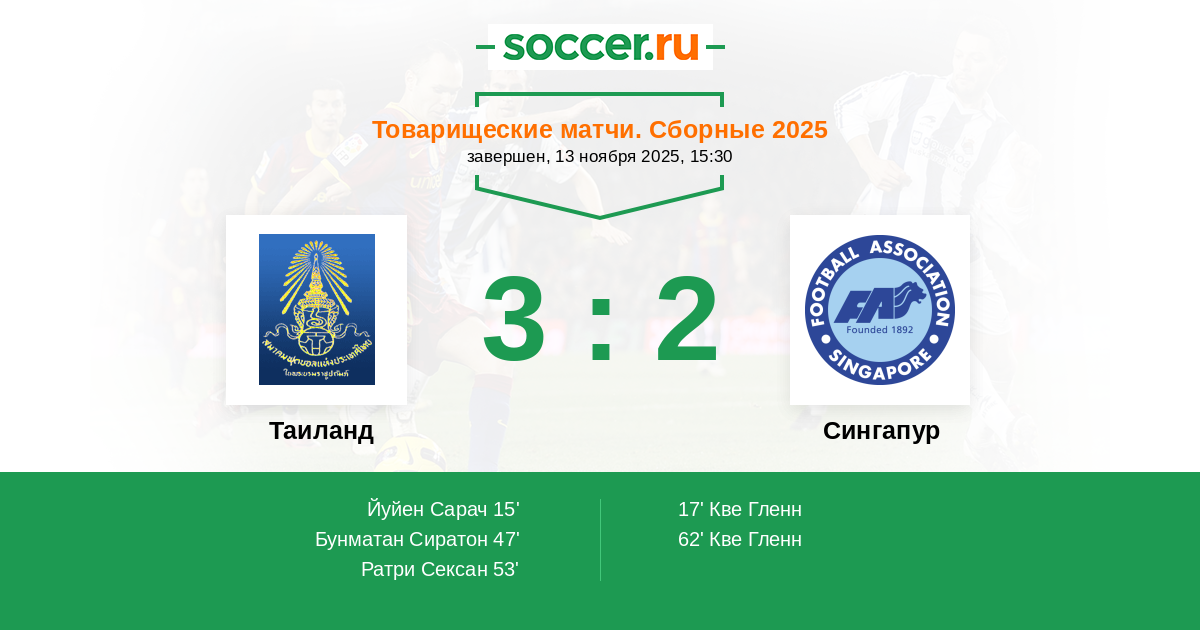 Запасные: 20 Ануин Саранон, 23 Патом-аттакул Кампол, 21 Бурират Суфахан (с 46'), 4 Ли-О Шиннафат, 15 Промсупа Сарингкан, 8 Чамратсамее Пеерадон (с 75'), 22 Ратри Сексан (с 46'), 16 Суенгчиттавон Танават (с 64'), 11 Арджвираи Порамет, 14 Поэипмаи Терасак (с 13'), 13 Иклас Санрон, 17 Сунсуп-Белл Джуд (с 64')