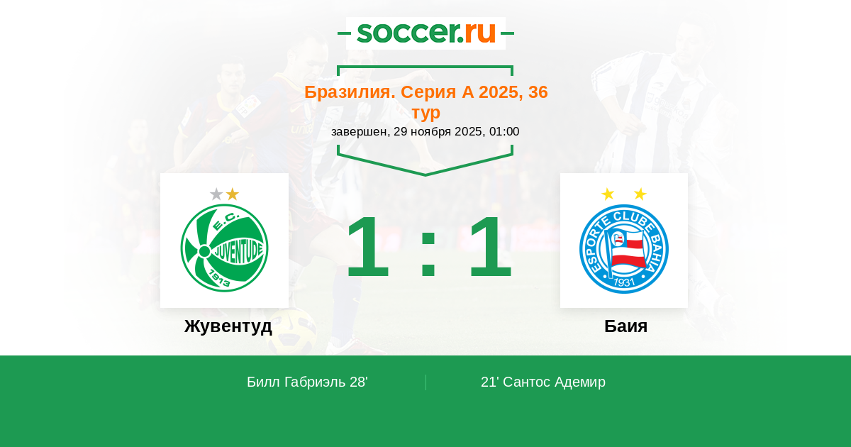 21' (0:1) Сантос Адемир (7) (Виллиан Жозе (12))