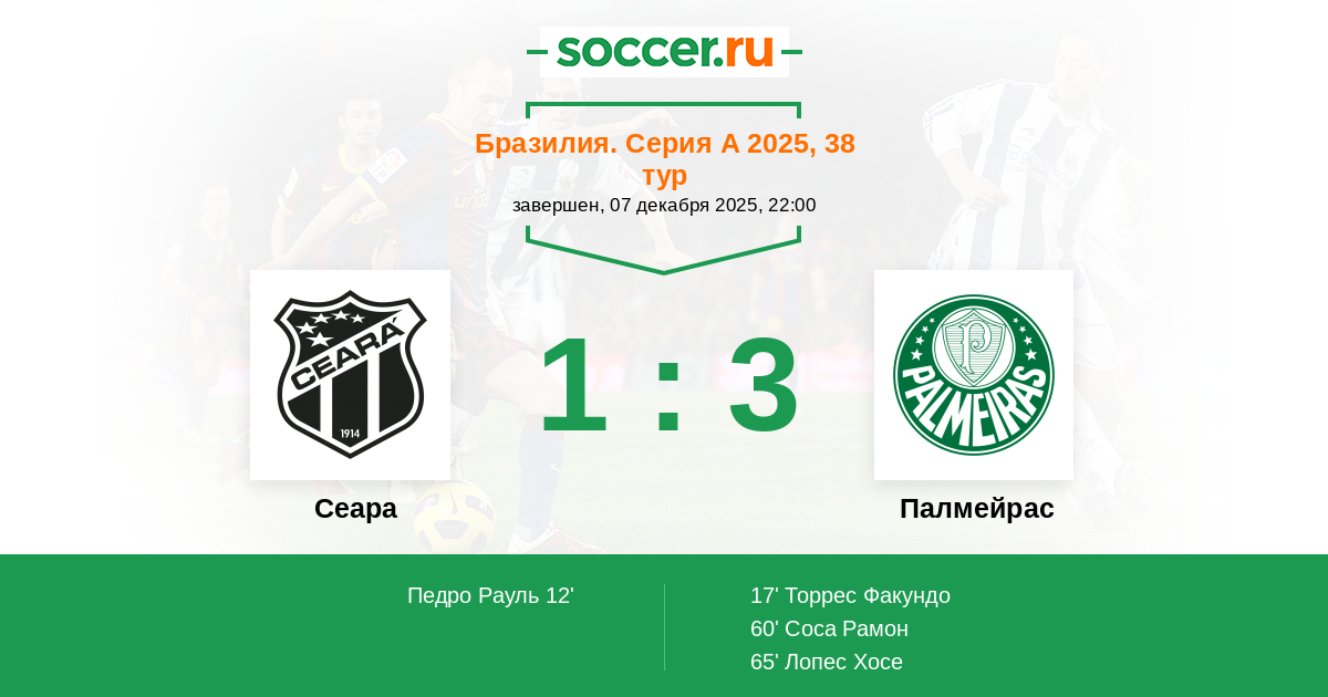 12' (1:0) Педро Рауль (9) (Виллиан Мачадо (23))