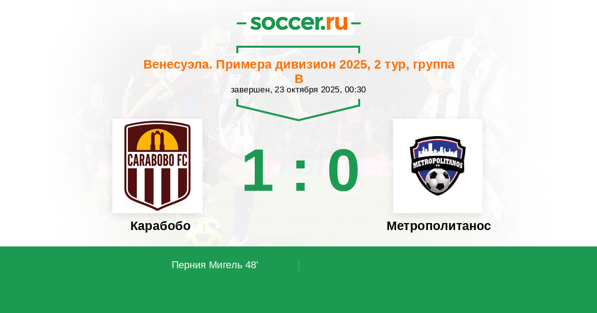 48' (1:0) Перния Мигель (13) (Ороско Йохандри (23))