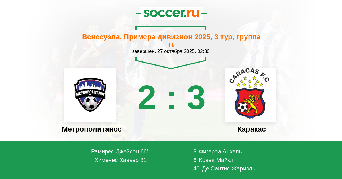 3' (0:1) Фигероа Анхель (22) (Ривилльо Даниэль (3))