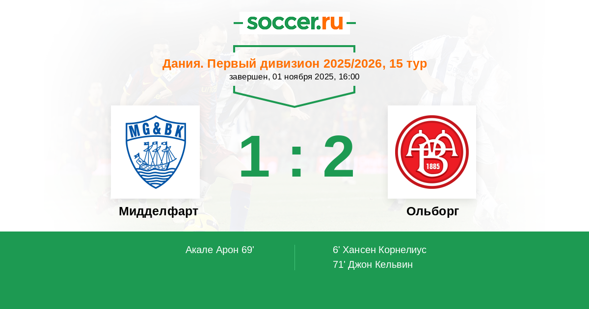 69' (1:1) Акале Арон (10) (Эг Педерсен Сорен (25))