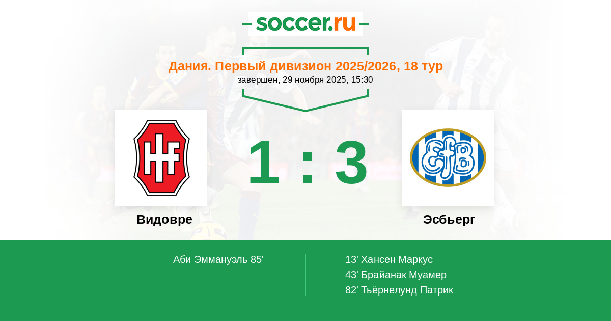 13' (0:1) Хансен Маркус (18)