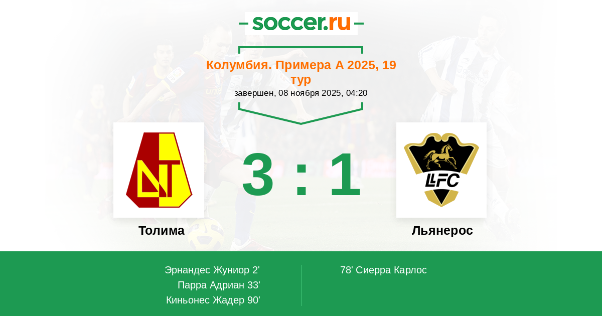 2' (1:0) Эрнандес Жуниор (20) (Ангуло Андерсон (2))