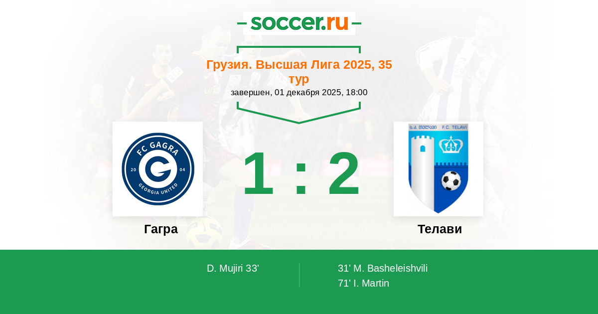 33' (1:1) Мужири Давит (9) (Зоидзе Саба (18))