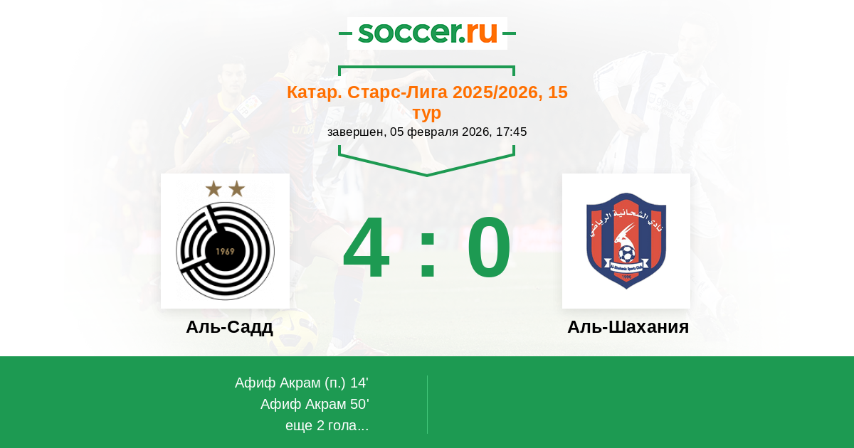 83' (4:0) Афиф Акрам (7) (Халид Хассан (10))