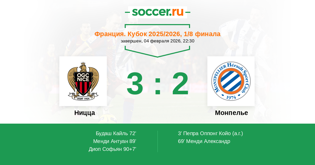 Запасные: 16 Дюпе Максим, 12 Клосс Жонатан (с 46'), 13 Эвертон, 14 Ндомбеле Танги, 15 Али Абди, 17 Диоп Софьян (с 64'), 18 Будаш Кайль (с 64'), 19 Вахи Сепе (с 46'), 20 Сансон Морган (с 46')