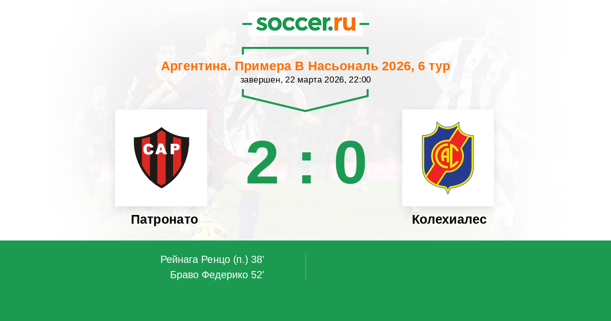 52' (2:0) Браво Федерико (5) (Сольдано Франко (7))