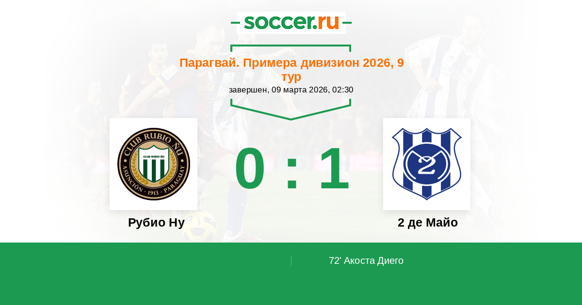 72' (0:1) Акоста Диего (27) (Фаринья Алексис (30))