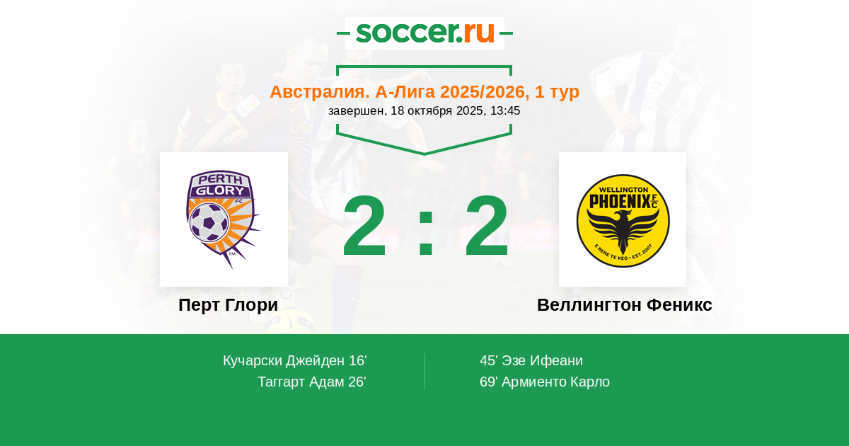 26' (2:0) Таггарт Адам (22) (Уолес Лаклан (11))