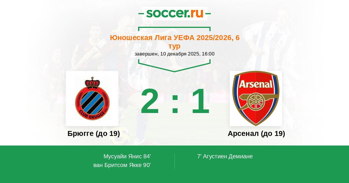 Брюгге (до 19) - Арсенал (до 19)