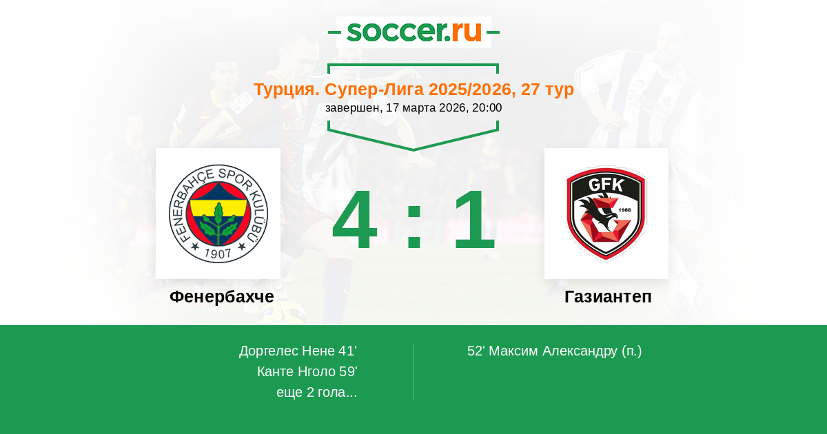 Запасные: 34 Гюнок Мерт, 7 Фред (с 84'), 94 Талиска (с 58'), 18 Мюльдюр Мерт (с 46'), 5 Юксек Исмаил (с 84'), 37 Шкриньяр Милан, 9 Актюркоглу Керем (с 74'), 70 Айдын Огуз, 67 Уреген Камил, 54 Экичи Алаеттин