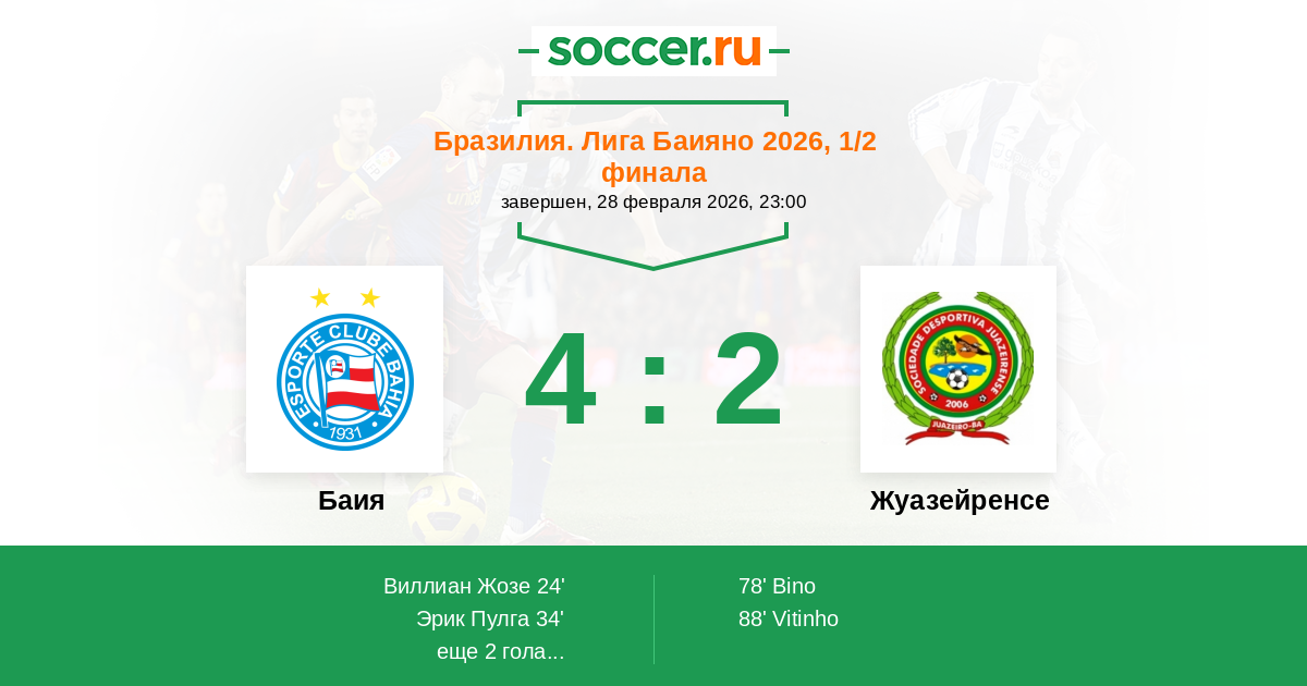 24' (1:0) Виллиан Жозе (12)
