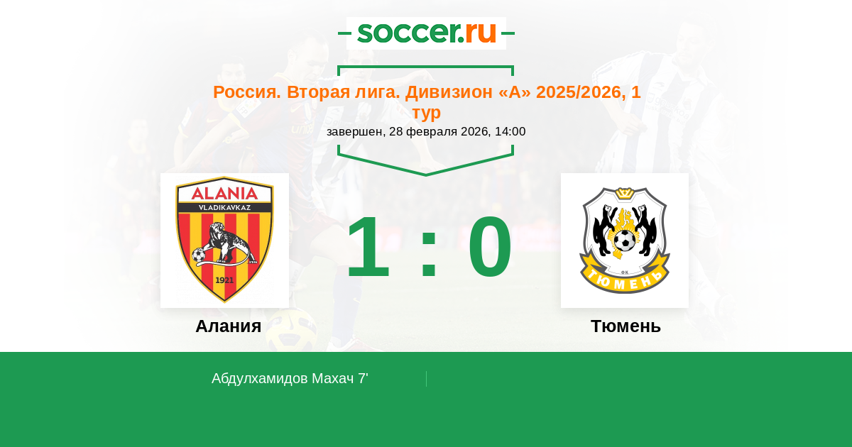 Запасные: 89 Шашлов Данил, 35 S. Kasaev, 58 Исик Мурат (с 75'), 23 T. Nikolov, 3 Кусков Артур, 76 G. Karkuzaev, 18 Кобесов Давид (с 75'), 17 Дудаев Инал, 7 Дибиров Исмаил, 57 Тепсикоев Давид (с 88'), 21 Козырев Артур (с 63')