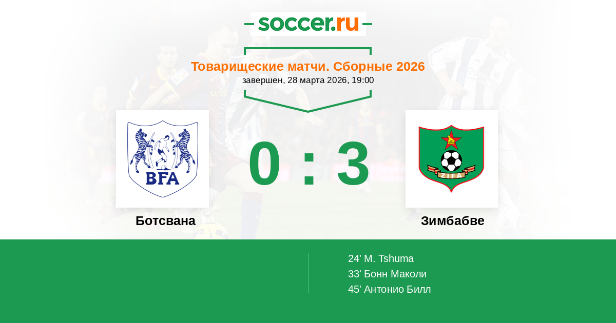 Запасные: 15 O. Ramoagi, 7 K. Moloi, 18 B. Matakula, 9 G. Tauyatswala, 14 N. Mosweunyane, 17 Секвай Оарабиле, 4 L. Modisaemang, 21 N. Dikutu, 19 K. Radithongwa, 13 P. Kaku, 23 C. K. Ramojela, 1 K. Kgosipula